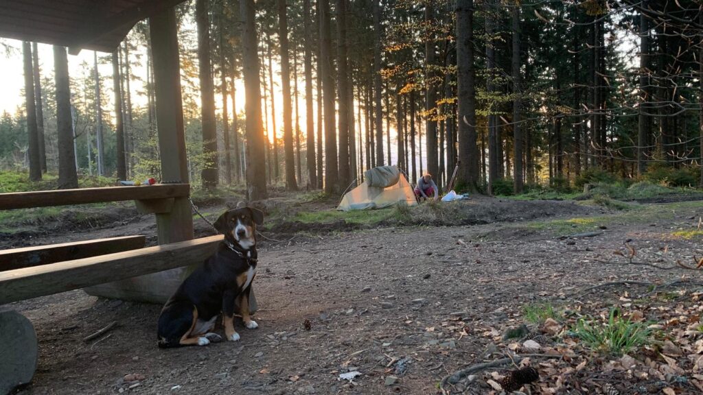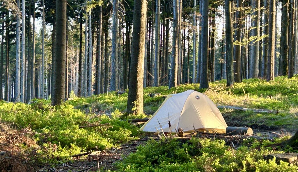 Noc neklidná. Zvečera přišel jelen a byl slušně řečeno naštvaný. Chodil kolem mého stanu a mručel. Stanujeme na jeho louce. Cherry ani nedutala, první noc co se nesnažila vyběhnout ven. Ráno se pejsek nejprve obezřetně rozhlíží a až potom opouští stan.
