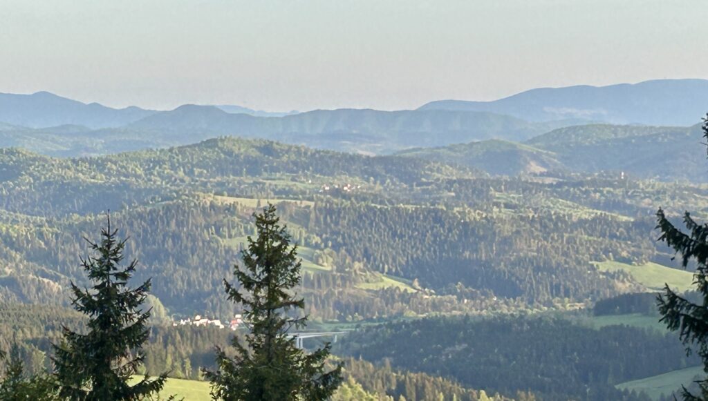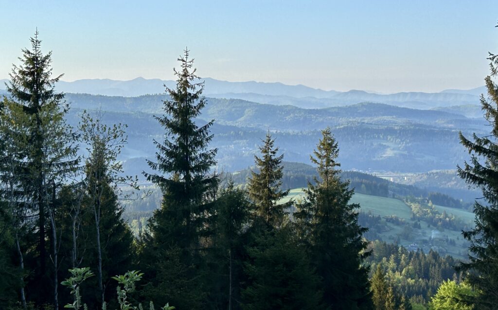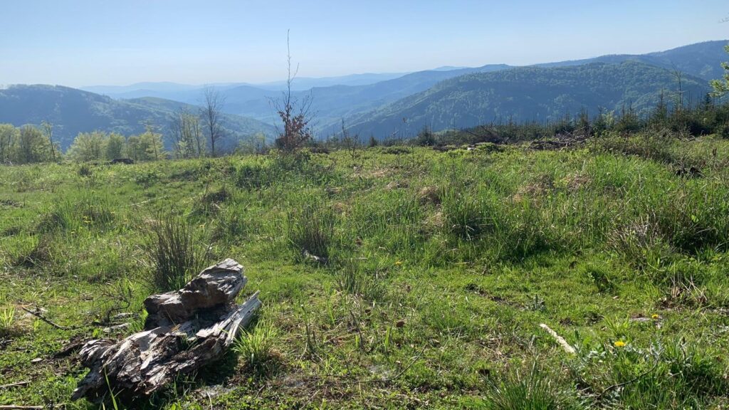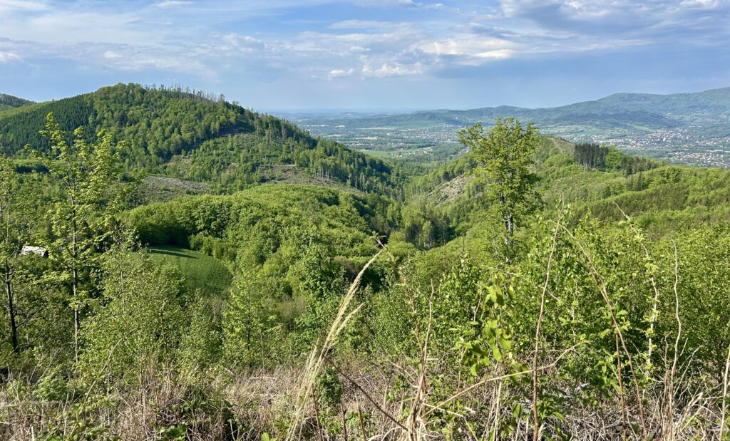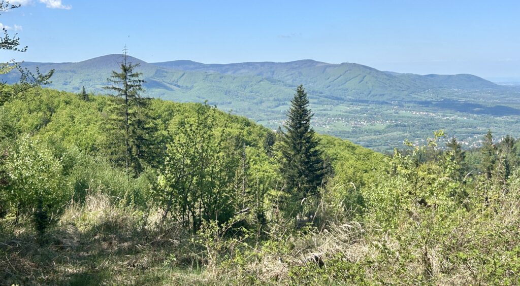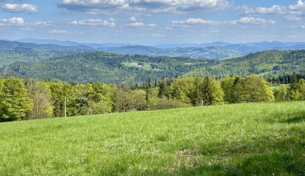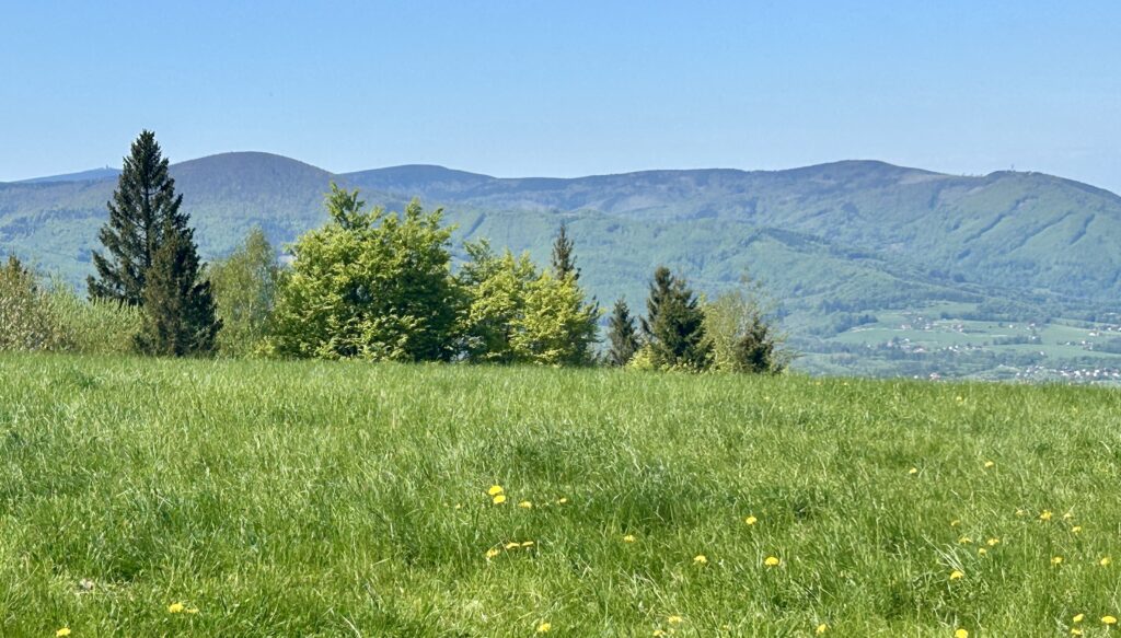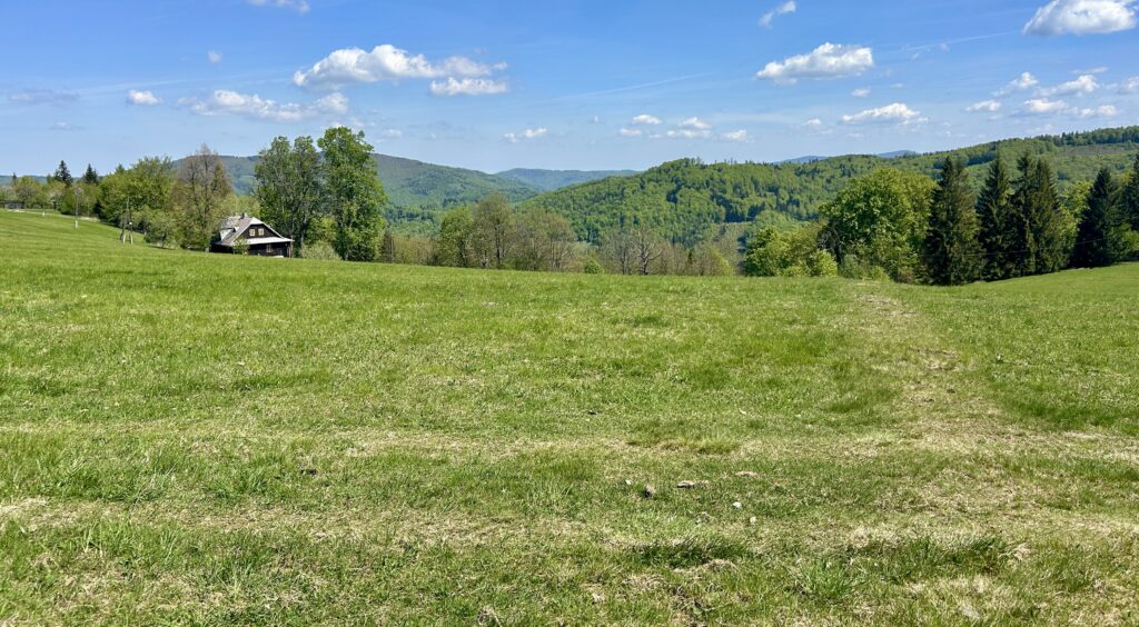 Po výšlapu se dostáváme na horské louky, občas zde stojí stavení. Na polské straně Beskyd sahají vesnice až k hřebenům, tady se na hřebenech vyskytují osamělé usedlosti. Pokračujeme stále po variantě Stezky Českem.