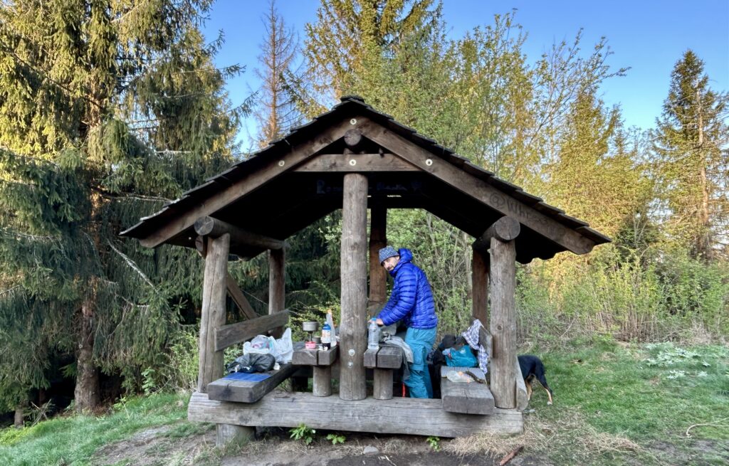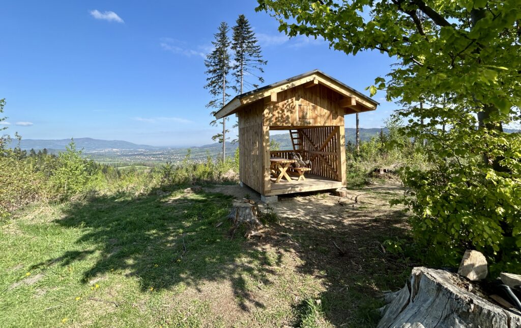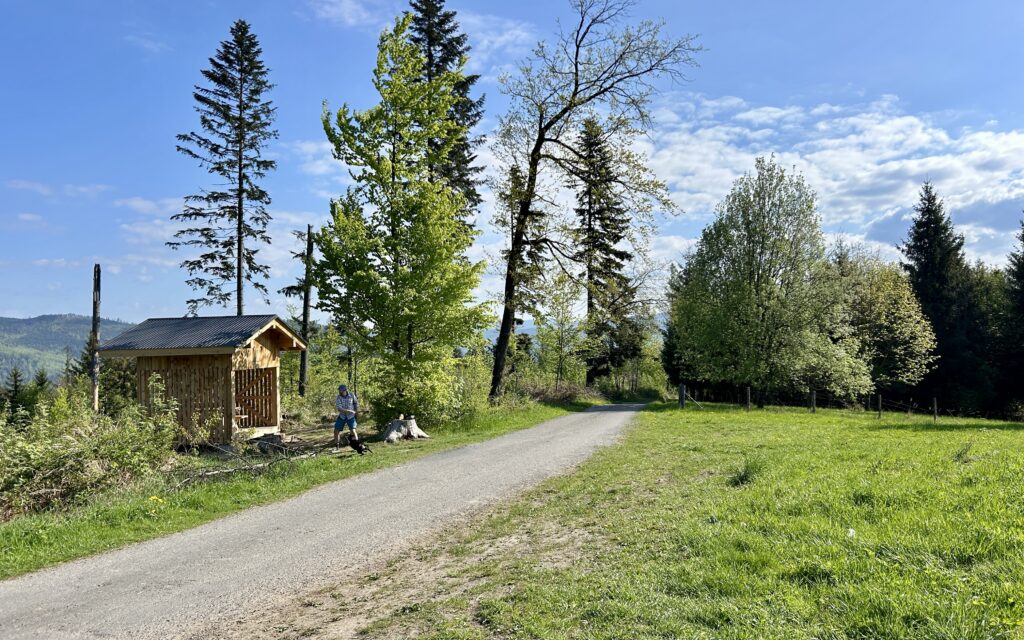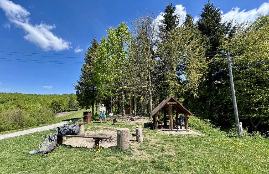 Přecházíme Jablůnkovské mezihoří. Ve studánce Pod Komorovským Grůněm dobíráme vodu. Míjíme starou útulnu, je použitelná. Další útulna Bukovec je nová a nádherná. Na půdě je na spaní letiště, v okolí se dá postavit stan. Já na takových místech se psem nocleh neplánuji, stejně bývají tyto místa o víkendech přelidněná, ale asi by se tu nespalo špatně.
