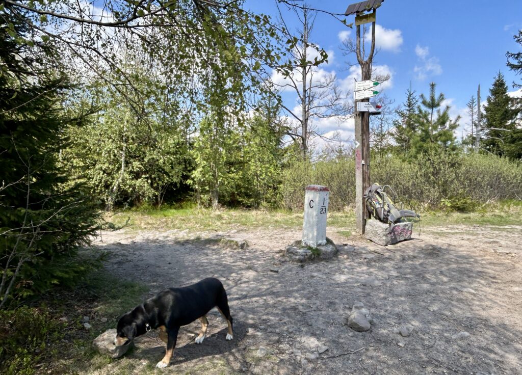 Stezka vede stále po hřebeni. Asi kilometr před Velkou Čartoryjí odbočujeme do Čech po Rytířské naučné stezce. Chceme se dostat z hlavní cesty, kde je stále spousta lidí. Scházíme pěšinou úplně sami. Na první rovné louce pod studánkou Pustovka si stavíme stany, Míša si stele pod širákem. Ze studánky beru vodu pro psa. Voda by se musela přefiltrovat, ve studánce plave kde co. Jsem ráda, že jsme si pitnou vodu donesli z chaty.