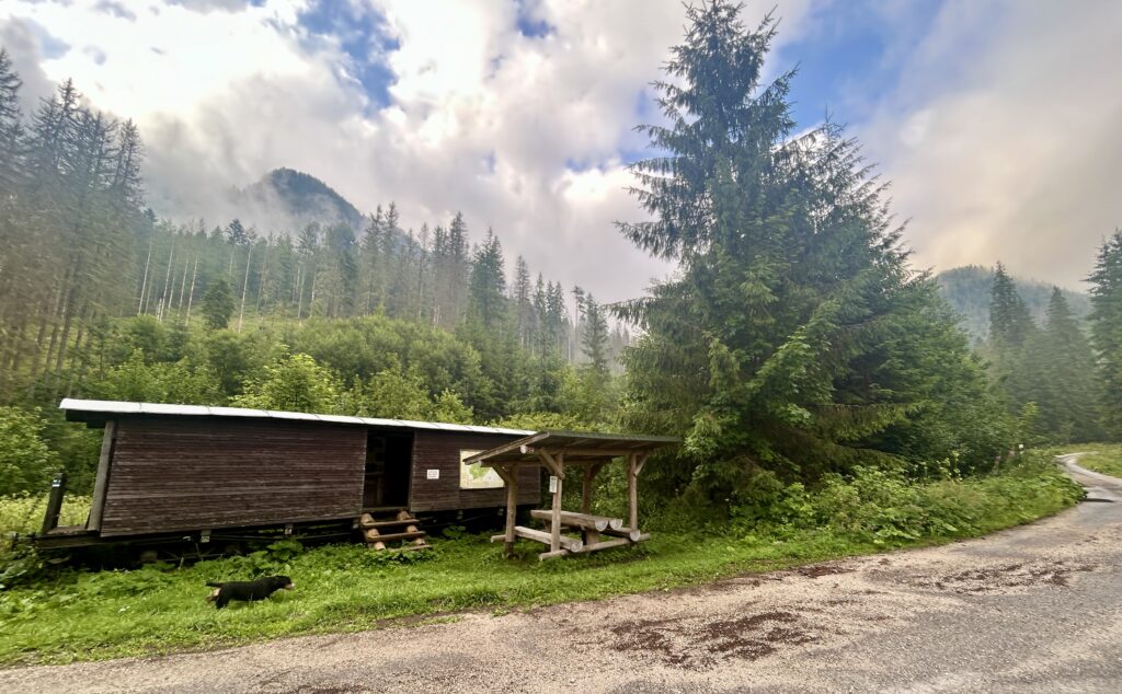Stoupáme pustou dolinou nejprve po asfaltu, později po nezpevněné cestě. V sedle Nižná Klaková jsme po třech hodinách chůze. Okamžitě se nám tu líbí. V ohradě stojí muráňští koně norik, tak konečně je taky vidíme. Přemýšlely jsme, že ještě popojdeme pár kilometrů, abychom zítra v dešti neměly k autu dlouhou cestu. Je to tu ale tak krásné místo, že zůstáváme. Stojí zde také dřevěná útulna s velkým přístřeškem, ale my raději spíme v našem staně.