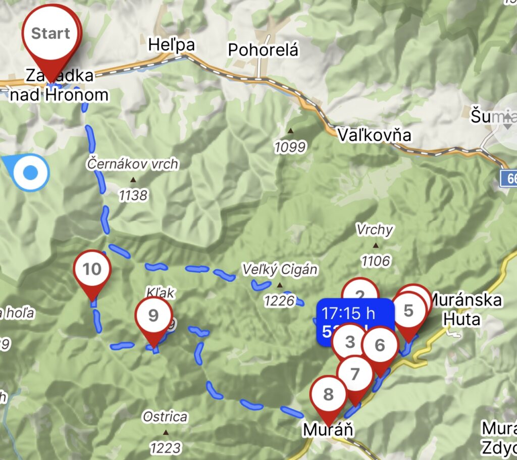Vybíráme trasu k Muráňské planině. Navigace nám ukazuje 4,5 hodiny a jen o 10 minut déle, když se vyhneme slovenským dálnicím, rozhodnuto, jedeme mimo dálnice. Už je dost pozdě a večer má pršet. Hledám teda ubytování na bookingu. Do nejlevnějšího penzionu Hron Beňuš volám a rezervuji na dnešek pokoj, se psem a snídaní pro dvě osoby 65 euro. Benzinku hledáme OMV aby jsme si mohly dále kafe zadarmo za body a nemusely ho platit.
