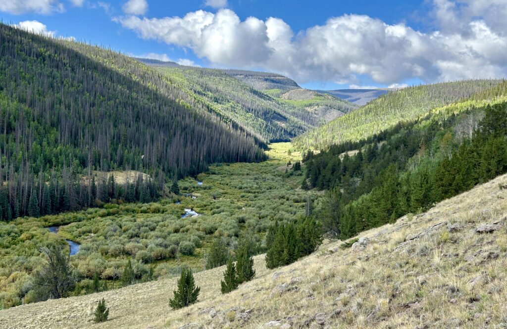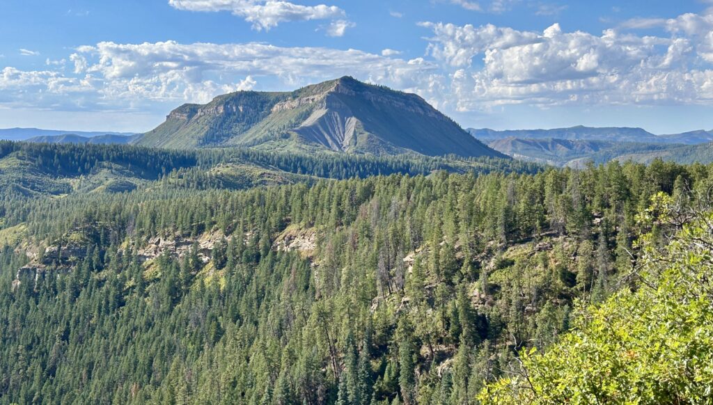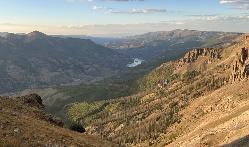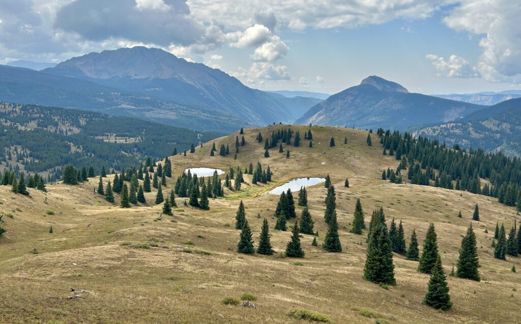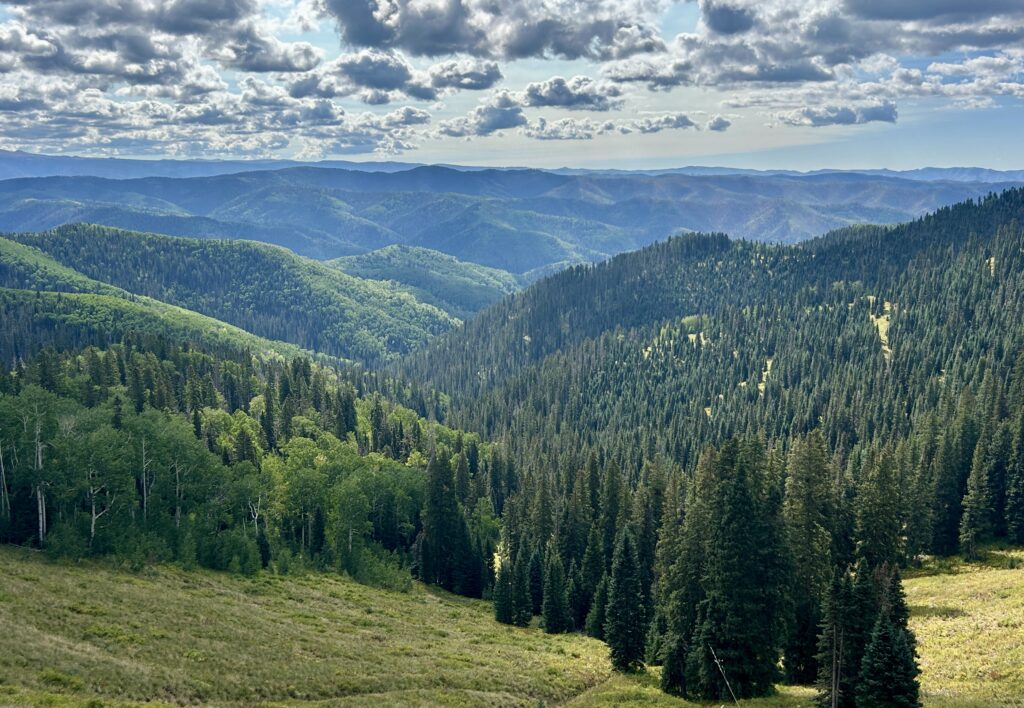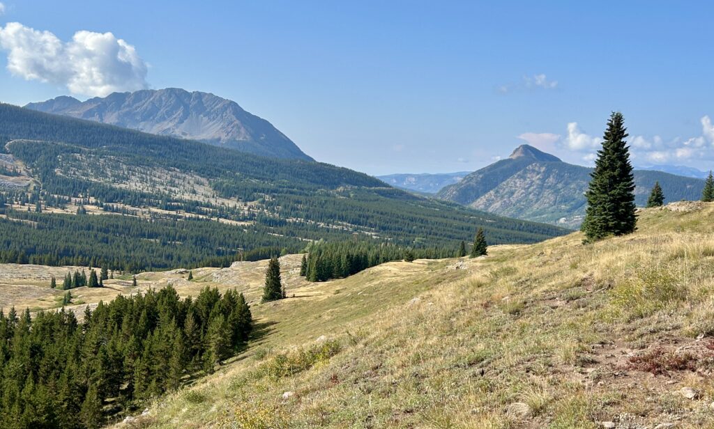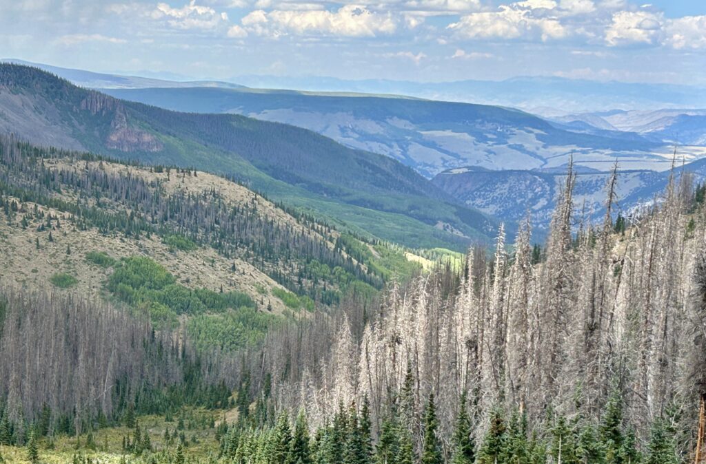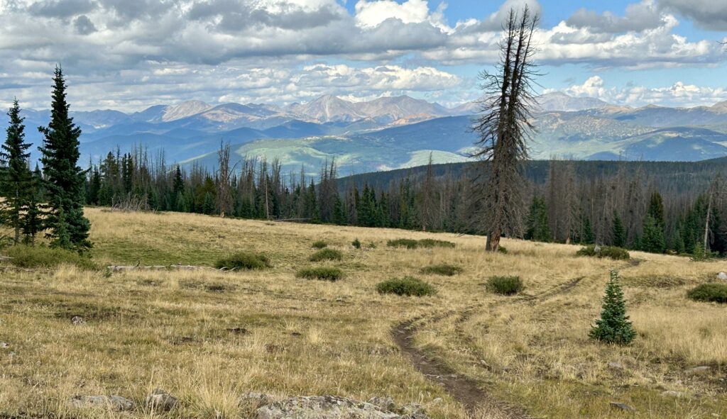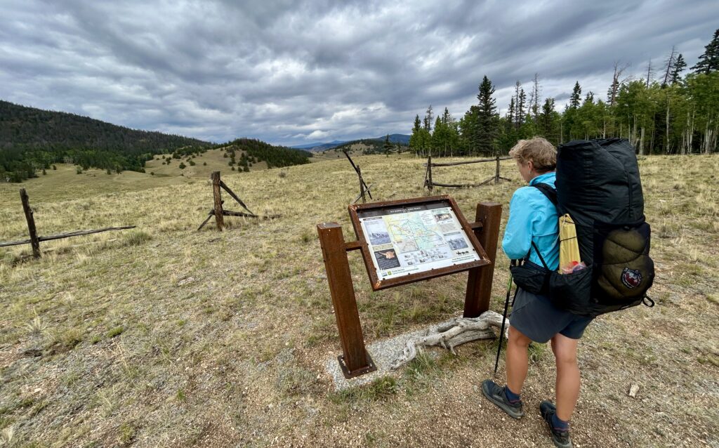 Vstupujeme do smíšeného lesa, převažují borovice a topoly osikové. Voda je v těchto místech zřídka, musíme si ji hlídat. Procházíme místy, kterými migrovali bizoni, nachází se zde historická území indiánů kmene Ute. Lidi zde lovili bizony údajně již před 18.000 lety. Náš trail nyní kopíruje starou španělskou cestu na západ. Dýchá tu na nás historie.