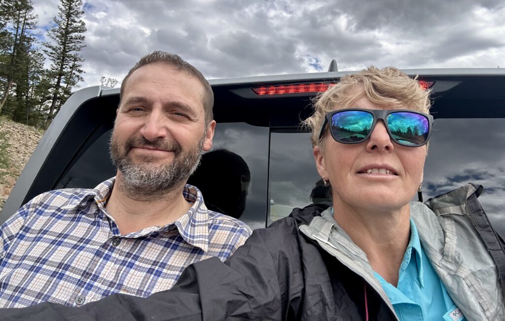 První nám zastavuje pán s obytnou nástavbou na autě, musí nejprve uklidit, abychom se tam vlezli. Říká, že nás vezme pár mil za město. Super. Jenomže po chvilce zjišťujeme, že jeho cíl je na opačné straně, než potřebujeme. Objeli jsme dva bloky a vysazuje nás kousek od místa, kde nás naložil. Druhý stop je biker, ten už ví kam jede a sveze nás 3 míle za město na výpadovku k našemu sedlu. Říká, že bude brzo v horách sněžit, to jsme zrovna slyšet nechtěli. Do třetice nám staví krásné žluté auto. Gustav s manželkou z Duranga nás odváží do Spring Creek Pass. Jsou úžasní, jedeme vyhlídkovou jízdou, paní nám vypráví o zdejší přírodě. Žila i chvíli v Evropě. Loučíme se objetím, prosí mne abychom každému řekli, že oni nejsou stejní jako jejich prezident. Skvělí lidi.