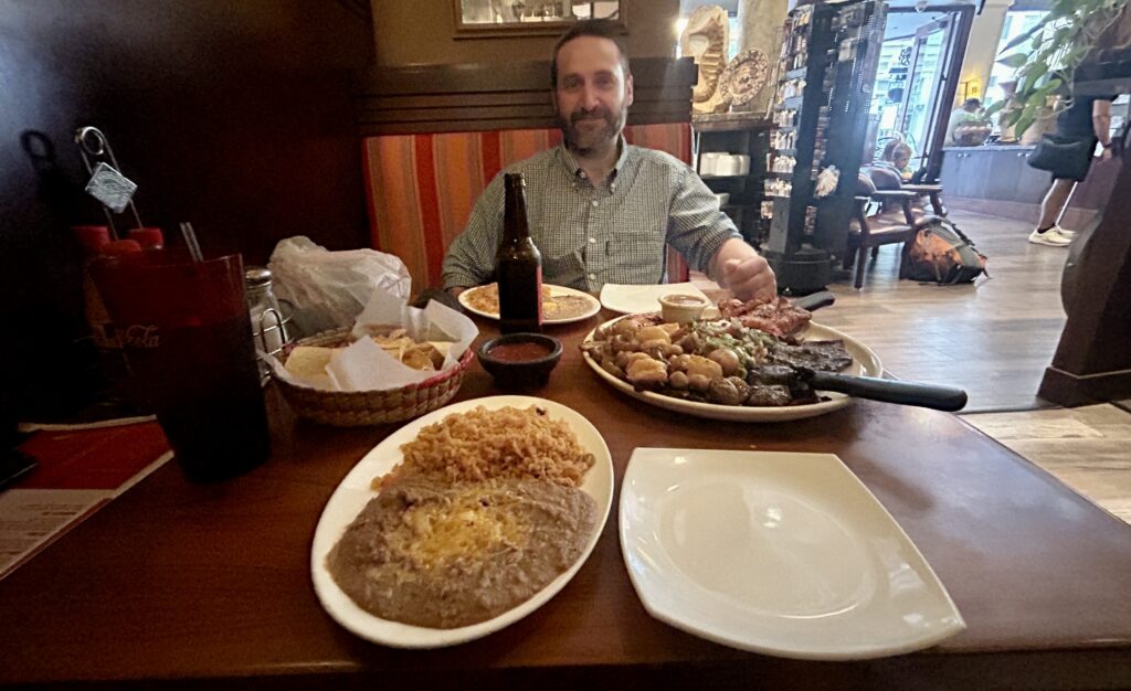 Odpoledne si sedáme do mexické restaurace Casa Tequila. Objednáváme si pořádné jídlo. Hovězí a kuřecí steaky, krevety s rýží a fazole. Jídlo je výborné. Slavíme dokončený trail. Platíme dohromady s pitím a spropitným 86 $.