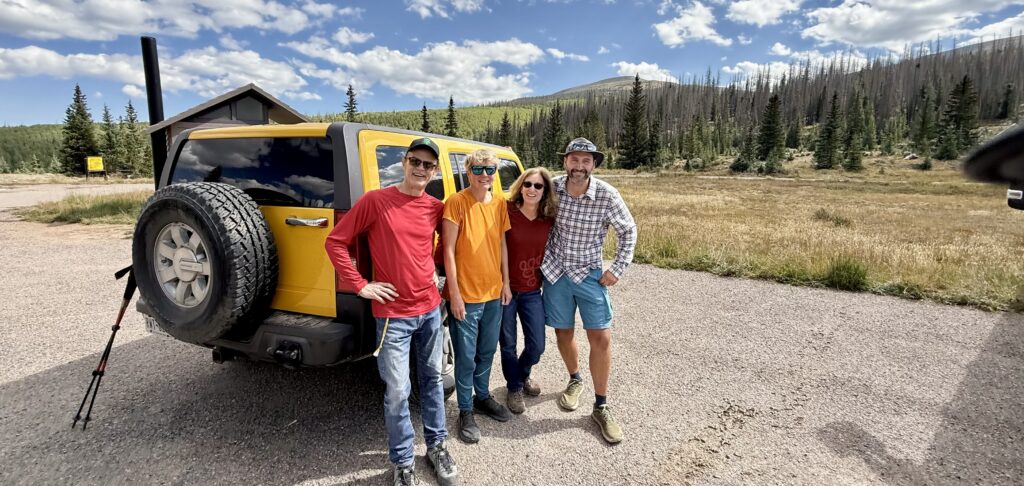 Trvá to asi 5 minut, než nám zastaví manželé v důchodu, jistě přes osmdesát. Jsou z Texasu, tady si koupili před dvaceti lety domek a tráví zde každé léto. Brzy už pojedou domů, podle nich v této době už bývá na vrcholcích hor sníh. No jsme rádi, že letos zatím v horách nesněží. Před devátou nás vysazují na sedle Molas, kde jsme včera trail přerušili. Další skvělí lidi, celou cestu jsme si povídali.