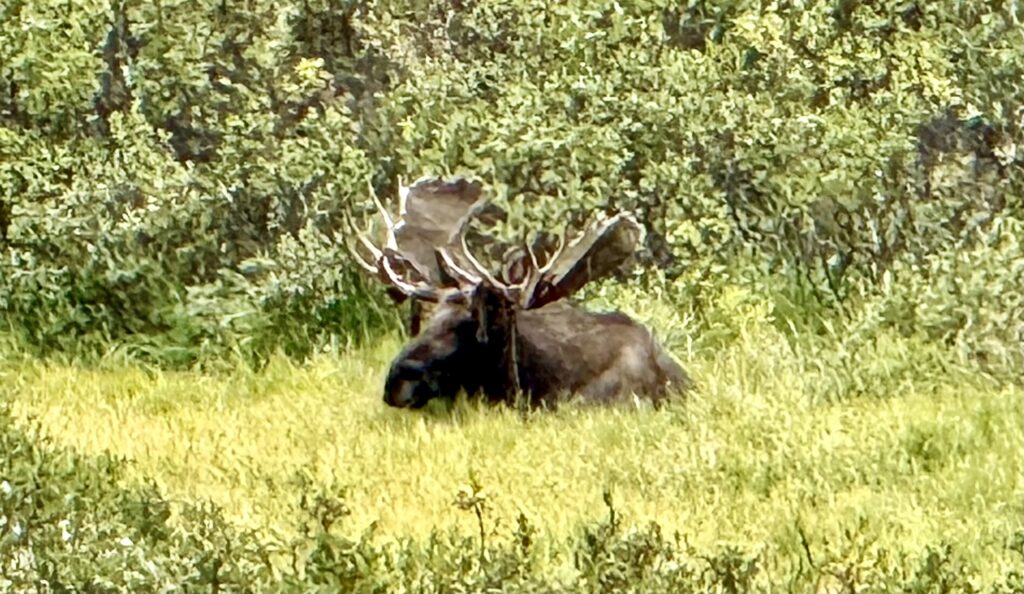 Přešli jsme několik sedel a údolí. Dnes máme štěstí na losy, vždycky je zahlédneme v blízkosti jezer. Včera nám přes cestu přeběhl kojot. Nejvíce vídáme jelínky. Potkali jsme lovce, jako zbraň měl kuš s optickým zaměřovadlem. Loví právě ty jelínky.